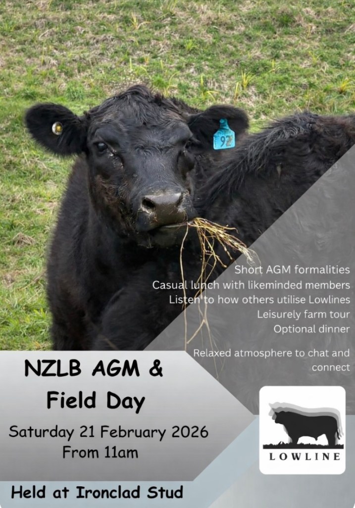 ALL WELCOME, come meet the stud breeders and some Lowlines, RSVP essential by 10 February 2026 to Matt Wilkinson nzlowlines@gmail.com